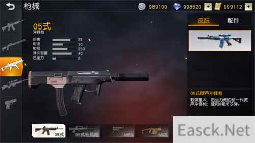 05式冲锋枪的综合性能十分优秀。它的单发伤害值高达37,在荒野现有的冲锋枪中仅次于MK60。在拥有强火力输出的同时,05式还具有超低后坐力的优势,在射击时枪身十分平稳。再加上高达40发的弹夹容量,05式将成为荒野新兵的绝佳选择。