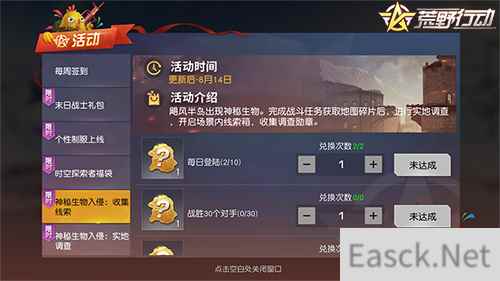 飞车激斗玩法最大的特色在于,游戏中的玩家即便被击倒也不会被淘汰,而是回到载具进入休整期,只有当全队队员都进入休整期或载具被摧毁时,才会被视作全队淘汰。极速狂飙,激烈对战,谁是下一个荒野老司机? 【神秘生物入侵警报 地图线索等待开启】 神秘生物入侵飓风半岛?即日起至8月14日,荒友们可以通过登录游戏、战胜对手、拾取空投物资、获得胜利和开启任意军需这五种方式,获取奖励“地图碎片·未知”,点亮地图碎片相应的区域。