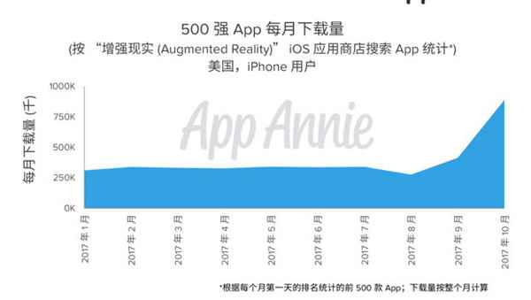 AR是2017下半年业内非常重要的趋势之一,苹果和谷歌都推出了对应的SDK,加之资本市场的青睐,不少人从VR转向了AR领域。根据App Annie的统计,截至2017年年底,App Store中约有3000款AR手游,虽然相比于App Store 100万款的移动游戏,AR手游的数量微不足道,但是众多厂商依然加紧布局AR游戏。