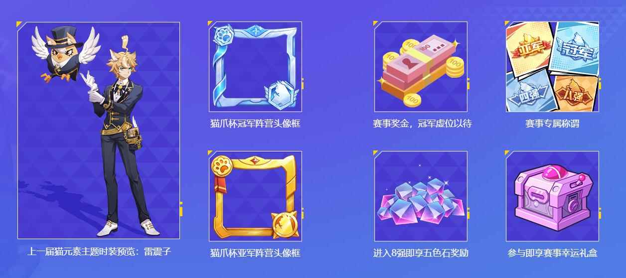 在激燃的猫爪杯比赛中,大家除了可以与阵营的小伙伴共同奋斗,问鼎学园冠军还能得到万元现金奖励、冠军阵营头像框,并能为所在阵营代言人赢得“猫咪”元素时装一套。此外,还有亚军阵营头像框、赛事专属称谓、五色石等众多好礼送出,赛事幸运礼盒更是人人有份,所有参与赛事的同学都能拿到喔!