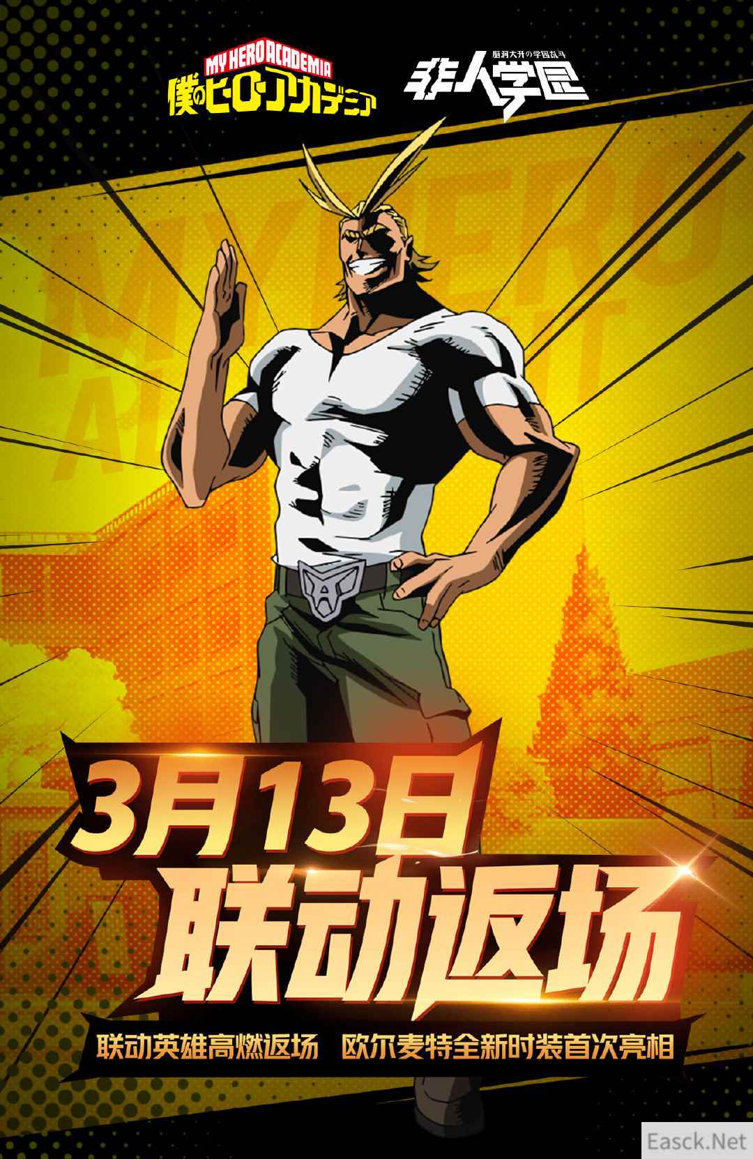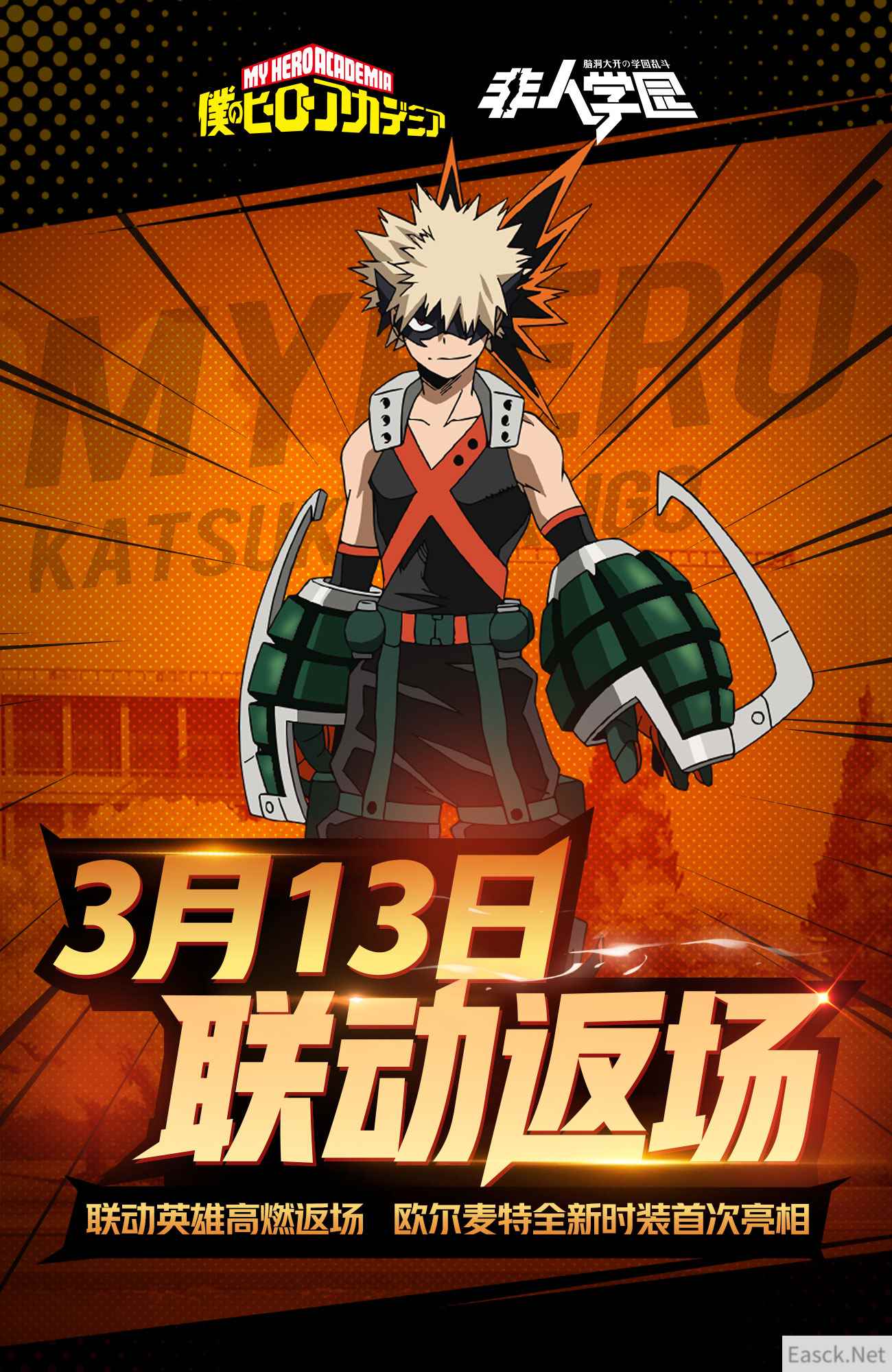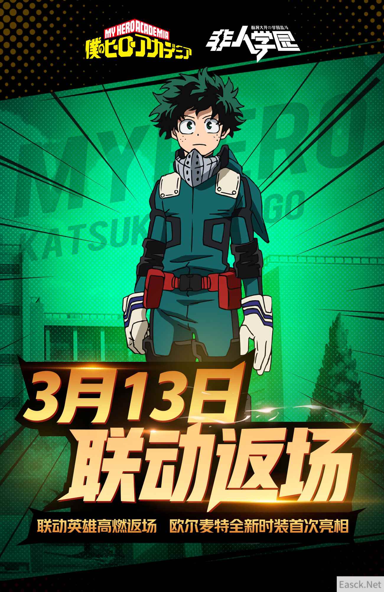 自从2018年10月《非人学园》与人气动漫《我的英雄学院》联动以来受到了玩家的广泛好评,联动结束后更是有不少动漫迷们前往非人学园官方平台留言,询问何时才能再次联动。现在答案已经确定,就在3月13日,《非人学园》x《我的英雄学院》联动复刻即将上线!三位超人气英雄——欧尔麦特、绿谷出久、爆豪胜己即将再次在学园闪亮登场!