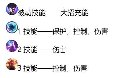 1技能可以给自己和友方提供护盾,能在一定程度上自保和保护队友。路人的伤害依赖2技能,2技能充能时间较长,需要谨慎使用。而配合被动充能,让3技能具有极强爆发性,在输出的同时还是一个大范围控制技能,在团战中配合队友能打出不错效果。