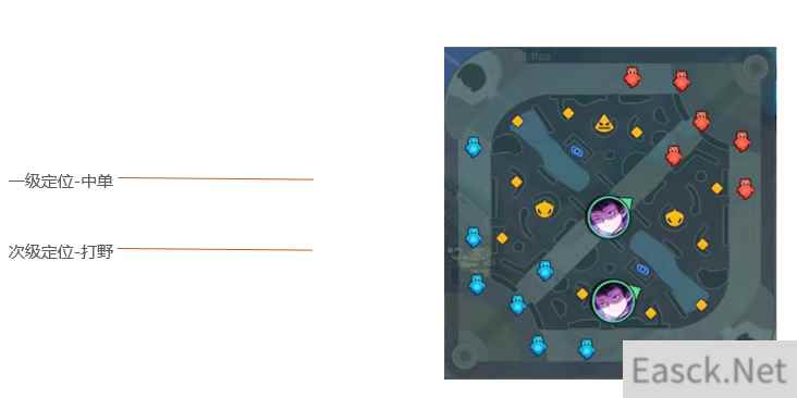 影山茂夫2技能伤害高、清线快,可以更快的游走支援,因此首选位置为中单。而当对方中路英雄强势时,缺少位移技能的茂夫在线上被gank时逃生能力较弱,因此也可以考虑走野区安全发育,1技能的护盾对于打野来说也提供了不错的续航。