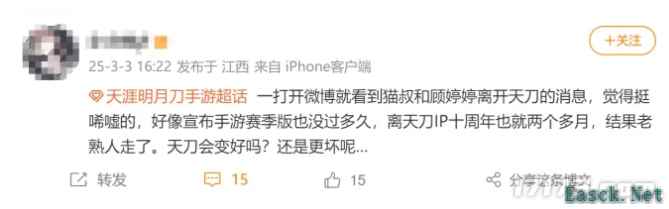 “老熟人走了,天刀会变好吗?还是更坏呢……”