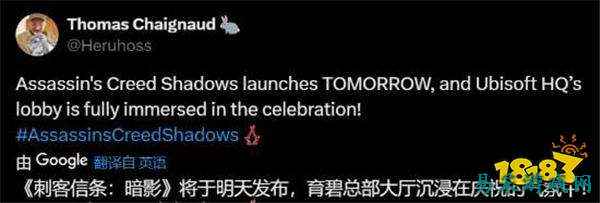 育碧热烈庆祝《刺客信条影》发售:公司大厅展示奈绪江和弥助的真人比例雕像!