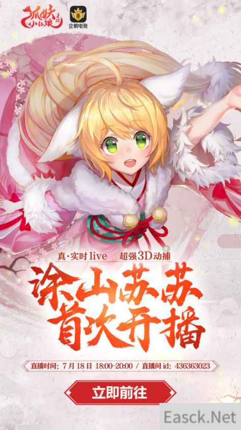 由爆款国漫IP改编、腾讯第一国漫手游大作《狐妖小红娘手游》,将在7月18日,登录企鹅电竞平台直播间,为观众带来一场打破次元壁的“涂山”直播!在本次直播中,观众将会欣赏到由涂山苏苏带来的宅舞与主题曲演唱。还能和涂山苏苏一起进行真心话大冒险的游戏,更有海量观看福利与惊喜,你想要的都在这里!