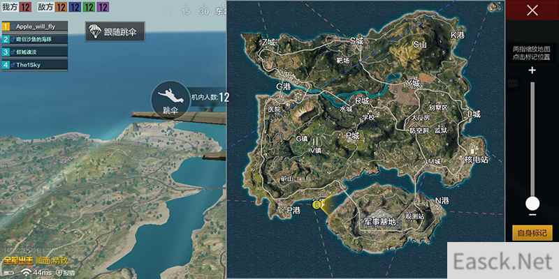 决胜五军的新颖点之一:联合与对抗 决胜五军的玩法核心是同阵营间不同队伍相互协作,淘汰其他阵营,阵营共同取胜。开局每个阵营的玩家乘坐各自阵营的飞机进入战斗,你没有猜错,有5架飞机一起进入战斗!而且各阵营的飞机航线各不相同。玩家会以4排方式进入战斗,全队4人被随机分配进一个阵营,每个阵营最多20人,同阵营的不同队伍是盟友关系,盟友头上有指示标记,让你知道这是盟友,和盟友联合淘汰其他4大阵营的玩家,最终剩下的一个阵营,全员都将获得胜利。这样算算吃鸡率能5分之1呢!