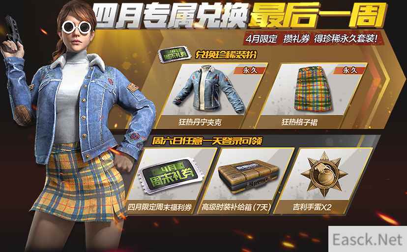 【狂热兑换 周末献礼】 4月28日至4月29日,全天不限时,玩家登录就有好礼给力送,高级时装补给箱和4月限定周末券,惊喜不断,拿到手软!让你五一小长假,根本没有时间可以寂寞!