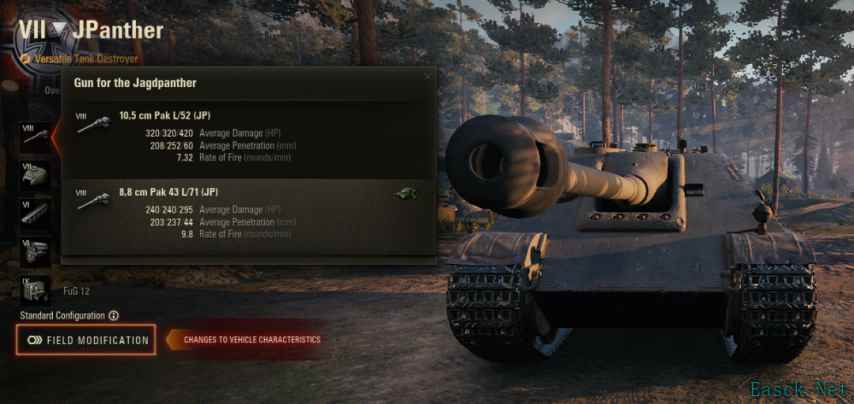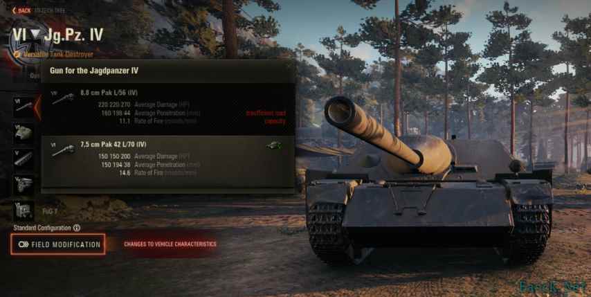 IV号坦克歼击车 在1.28.1版本,坦克得到如下改动: 3门炮优化成2门炮 只有长75和短88了 短88穿深从145/194 变成 160/198 发动机功率、发动机模块血量加强 倒车-12变成-14 IV歼以前的问题就是短88穿深偏低,之前还加强过一次穿深,这次更是整体加强了,也算是众望所归。这车原本就有相当高的DPM和隐蔽,加强后应该能在6级过的更舒服了。 猎豹