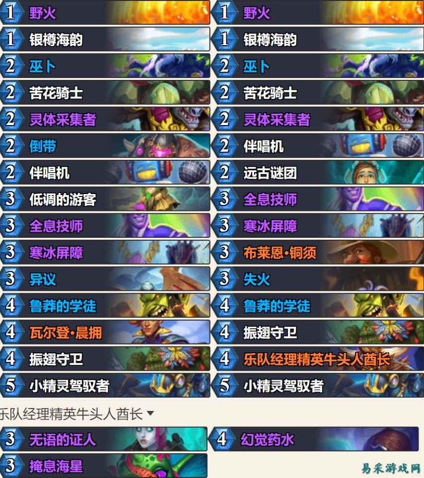 有玩家表示怎么没有狂野卡组,下面就推荐一个目前胜率很高的狂野灌注法(钻石到传说分段841场胜率65.0%)。我视频还没做,这里算是提前预告了。
