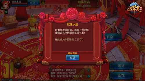 浪漫结婚系统上线 与TA一起携手江湖 为了让玩家拥有甜蜜的游戏体验,《QQ华夏手游》在本次更新特地推出了全新的结婚系统。从此各位英雄就可以在游戏中与爱人结为连理,一起面对战争与热血的华夏世界。情投意合的玩家们在《QQ华夏手游》中,还能体验到有别于其他游戏的订婚仪式:只要心仪对象接下了玩家在婚宴商店中购买的定情信物,即可视为成功订婚。