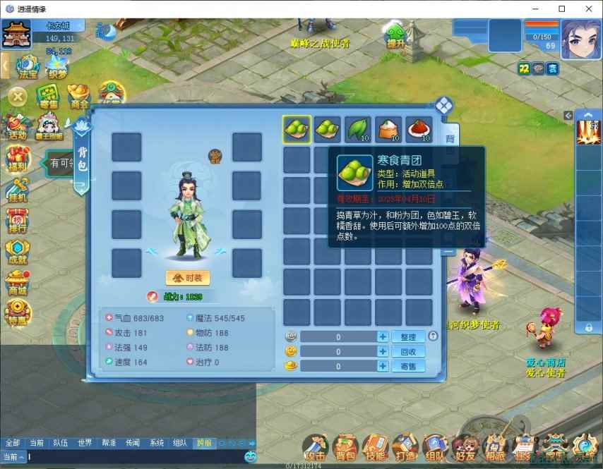 活动期间,少侠完成日常任务会掉落艾叶、糯米、豆沙等材料,可以用来合成青团,吃掉后得到丰厚奖励。另外,30级以上的少侠每天可以去活动使者那领取一个寒食青团,食用后获得100双倍点数。 【寻春踏歌行 春风化雨落】