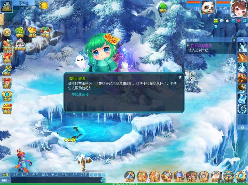 梨花风起正清明,青青翠翠,草长莺飞,少侠何不去寻找清明小使者共度节日呢?活动期间的8:00-23:00,每隔15分钟,少侠可在江南、九龙坡、昆仑山等地寻找到清明小使者NPC,接取春风化雨落任务。 |