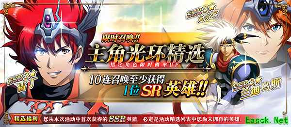 【新限时召唤-主角光环精选】 历代的主角齐聚一堂,手持圣剑,英雄的辉光照耀四方!新召唤卡池登场,SSR英雄雷丁、艾尔文、兰迪乌斯出现概率提升!作为《梦幻模拟战》系列中每一代最为闪耀的英雄,“主角光环”加持可非浪得虚名!无论是反击无双的雷丁还是问鼎巅峰竞技场的兰迪乌斯,亦或者“屠龙小能手”艾尔文,他们都活跃于各个阵容之中且发挥着重要作用。本次召唤还带有精选福利,从本次活动中首次抽取到的SSR英雄,必定是活动精选列表中你尚未拥有的SSR英雄,机不可失哟~