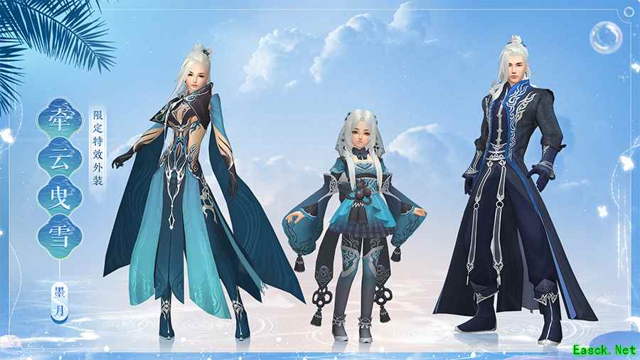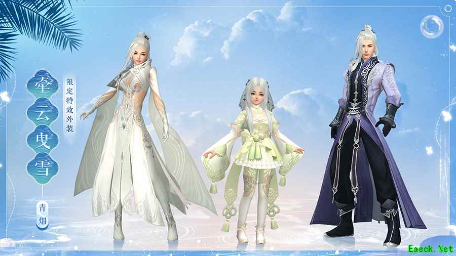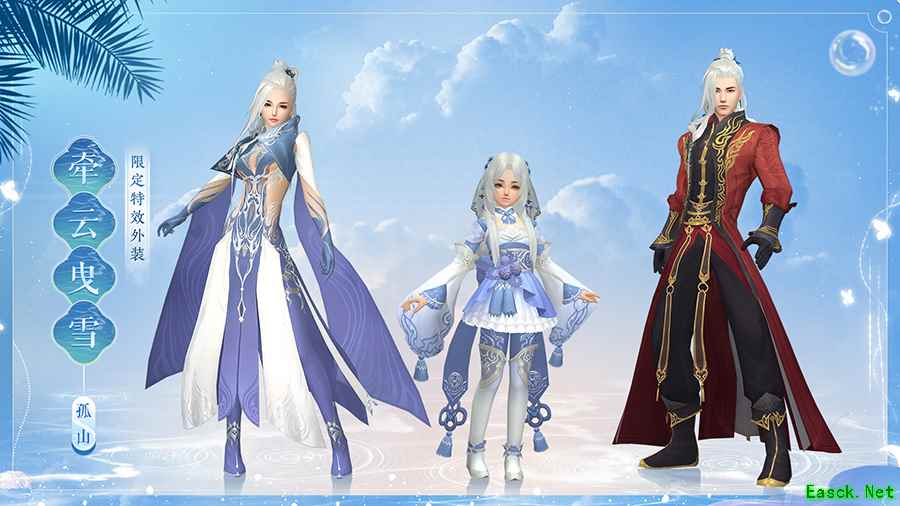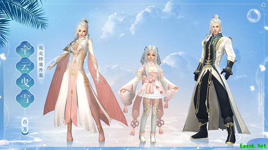 限定特效外装【牵云曳雪】华美矜贵,朵朵金枝自身后绽放,璀璨花团化作繁星点点,仿若琼楼玉宇间送云游走。