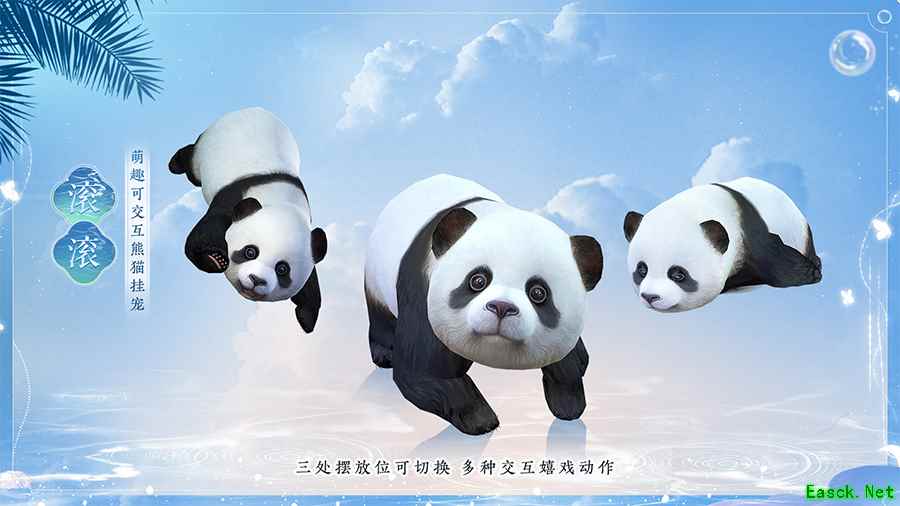 萌趣可互动熊猫挂宠【滚滚】萌兽出没,将于7月29日和众侠士见面!它会在主人打坐时卖萌求摸,亦会爬至主人头顶登高望远,正是侠士巴蜀之旅的最佳玩伴!