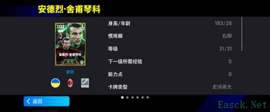 *增能后球员总评可达100分,上阵最大总评可达104分 卡卡凭借超高的盘控三项数值,再加上特殊技能【旋风盘带】,在实况赛场同样能脚下生风,凭借灵巧过人和无解的持球推进,撕裂对手重兵把守的防线。不仅如此,他还具备出色的策应能力,坐镇中场时,更能用精妙传球为队友输送炮弹! 舍甫琴科 他是东欧传奇锋霸,是禁区内的致命杀手。顶尖的速度和爆发、鬼魅的无球跑位,再加上全面的射门能力,使他成为红黑军团经典4-3-2-1阵型中最稳健的终结点!03-04赛季,舍瓦在联赛中火力全开,狂轰24粒进球,率队问鼎冠军,个人更是荣膺欧洲最佳球员!