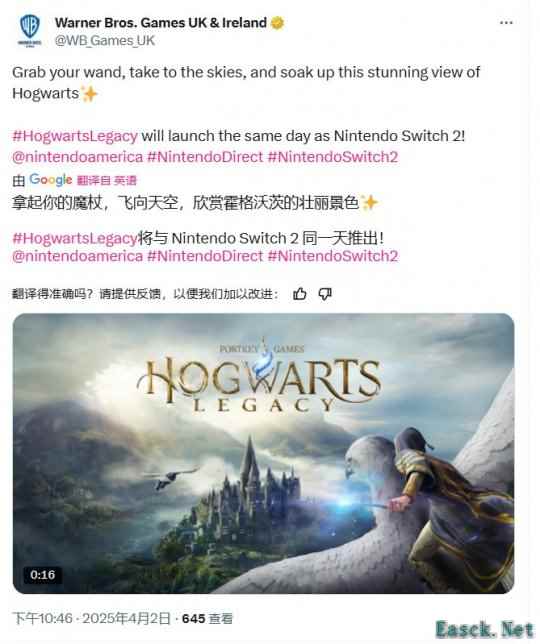 Switch 2将于6月5日在日本和北美发售,定价449美元。在今天的直面会上,任天堂公布了Switch 2的首发护航游戏,绝大多数为第三方游戏。 ![]() 首发游戏一览: 《马里奥赛车:世界》 《文明7》 《赛博朋克2077:终极版》 《霍格沃茨之遗》 《街头霸王6》 《黑帝斯2》 《双影奇境》 《如龙0 导演剪辑版》 《勇气默示录 高清复刻版》 Toby Fox《Deltarune》第三&四章 此外,《塞尔达传说:旷野之息+王国之泪》、《银河战士4》Switch 2版也将是“首发游戏”: ![]() 《街头霸王6》: ![]() ![]() ![]() ![]() 华纳官宣: ![]() |