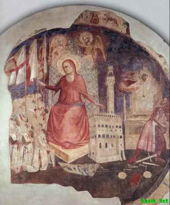 上台后,他却霸道专政,推行了什一税制度,并且一再的拖欠承诺给贵族的贷款不予发放。这些举动立马引起了当地人的抵触情绪,终于在次年,佛罗伦萨人开始起义,并在短短的一个月时间内将瓦尔特六世赶出了佛罗伦萨。连同瓦尔特六世被驱逐的还有他当时带来的佣兵团,在没有了领主头衔的庇佑下,佣兵们肆意劫掠制造混乱,并借助当时的黑死病的弥漫变得变本加厉。因为佛罗伦萨人有举帽子来表示抗议的习惯,所以这个佣兵团也被他们取名“帽子兵团”。于此同时,在米兰帕拉比亚戈战役失败后的希奥尔希奥佣兵团也终究迎来了第一次的佣兵团解散,这个佣兵团的人也同样想无头苍蝇一样到处找活路,时间久了他们意识到还是组织在一起找新出路。就这样,两个佣兵团组合在了一起成为了后来的黑佣兵团。此后,他们一直抵抗宿敌——比萨人,并在两年后与代表比萨人的白佣兵团进行了卡辛那战役,这也是黑佣兵团最辉煌的一次战役。为纪念这次战役,米开朗琪罗特意绘制了《卡辛那之战》,但是他最后只做出了草图,并未最后完成。