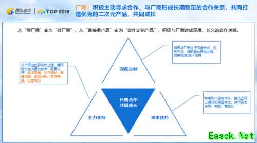 在厂商层面上,腾讯将积极主动寻求合作,与业内不同大小厂商形成长期稳定的合作关系,共同打造优秀的二次元产品,实现共同成长;