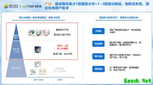 在产品层面上,腾讯将保证每年至少1款爆款大作以及1~2款细分精品,通过矩阵式布局,满足各类用户需求;