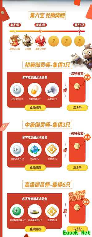 在此之外,《一起来捉妖》于4月13日推出了地域六宝活动,玩家邀请好友还可额外获得六宝铃铛捕捉地域妖,集得1只、3只、6只地域妖可分别获得道具礼包或渠道专属奖励,玩家最高可获得4999元Q币红包。