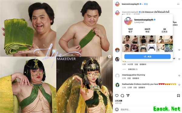而《以闪亮之名》在海外的火热不仅仅是在游戏玩家群体中,可能你不知道lowcostcosplay本人,但是他的图你一定看到过,他就是泰国的最牛低成本cos大神。低成本cosplay大神本人可以说是永远走在时尚潮流前沿,什么火就会创造出对应的低成本cosplay作品,每一次都能令人大跌眼镜。在《权利的游戏》美剧火爆全球期间,他曾经徒手cos过龙妈与她的龙,《赛博朋克2077》游戏大火期间,他也和自家的猫一起cos过其中的NPC。