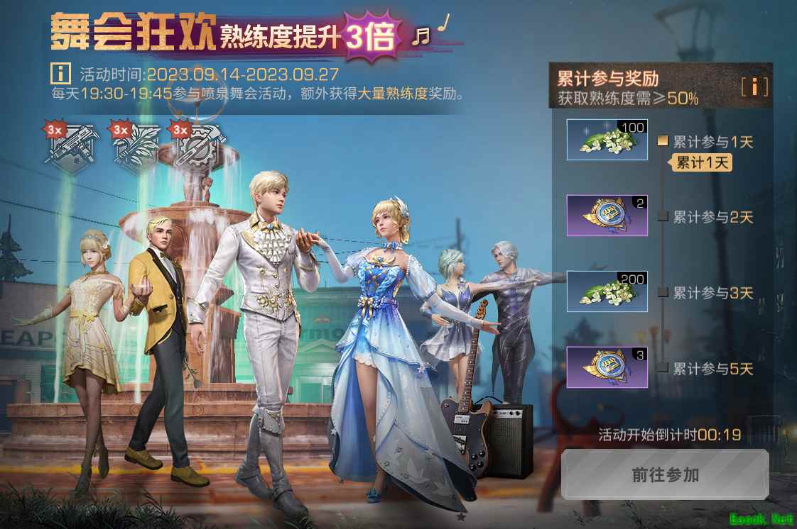 舞会熟练度提升三倍!2023年9月24日-9月27日活动期间,每天19:30-19:45时段,参与喷泉舞会的幸存者可获得全阶段活动熟练度的三倍加成,累计参与喷泉舞会活动还可解锁额外精美奖励。快跟随音乐节拍,沉浸在这场派对狂欢里吧! 【涂鸦公园】