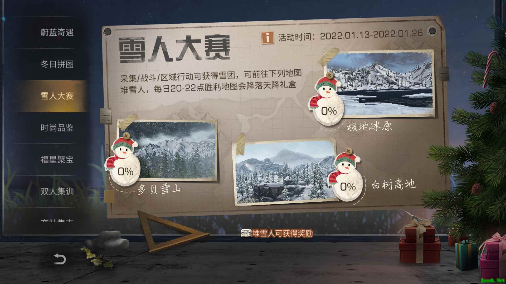 年关将至,气温也越来越低,明日大陆逐渐被厚厚的积雪覆盖。联盟为幸存者们带来了冬日堆雪人的活动,还有冬日拼图,签到有礼等,丰厚的物资奖励为幸存者们的明日新年做了充足的准备! 【雪人大赛开启 赢取天降礼盒 】 在1月13日-1月26日期间,在野外采集,战斗的区域可以获得雪团,前往指定地图找到雪人基座并堆雪人就可以获得奖励!每日20点,堆雪人进度最快的胜利地区将天降礼盒!快来用你手里的小小雪团赢得天降礼盒吧!