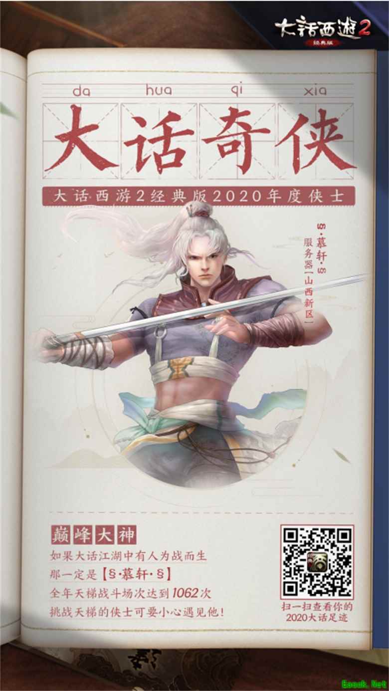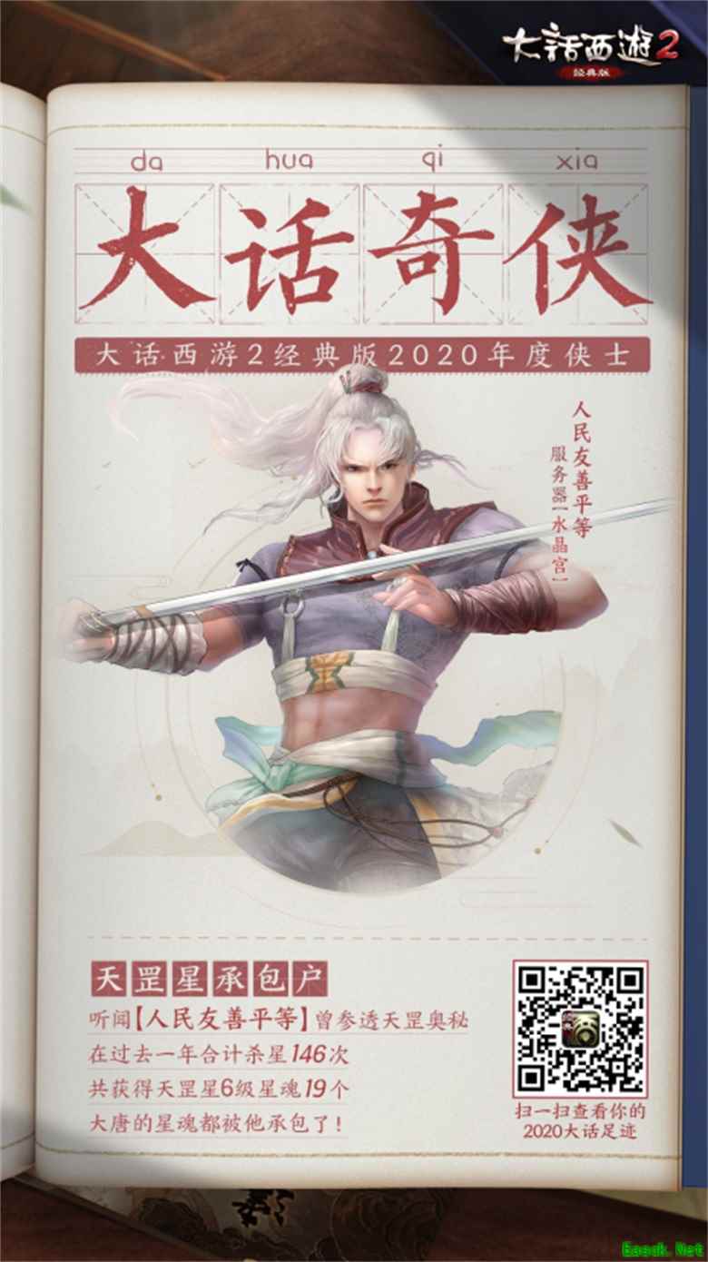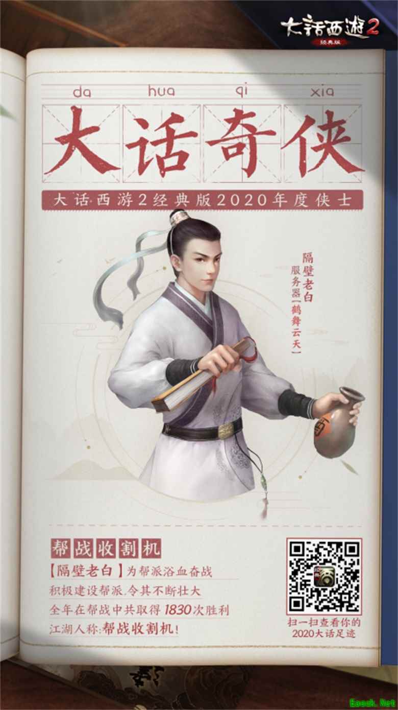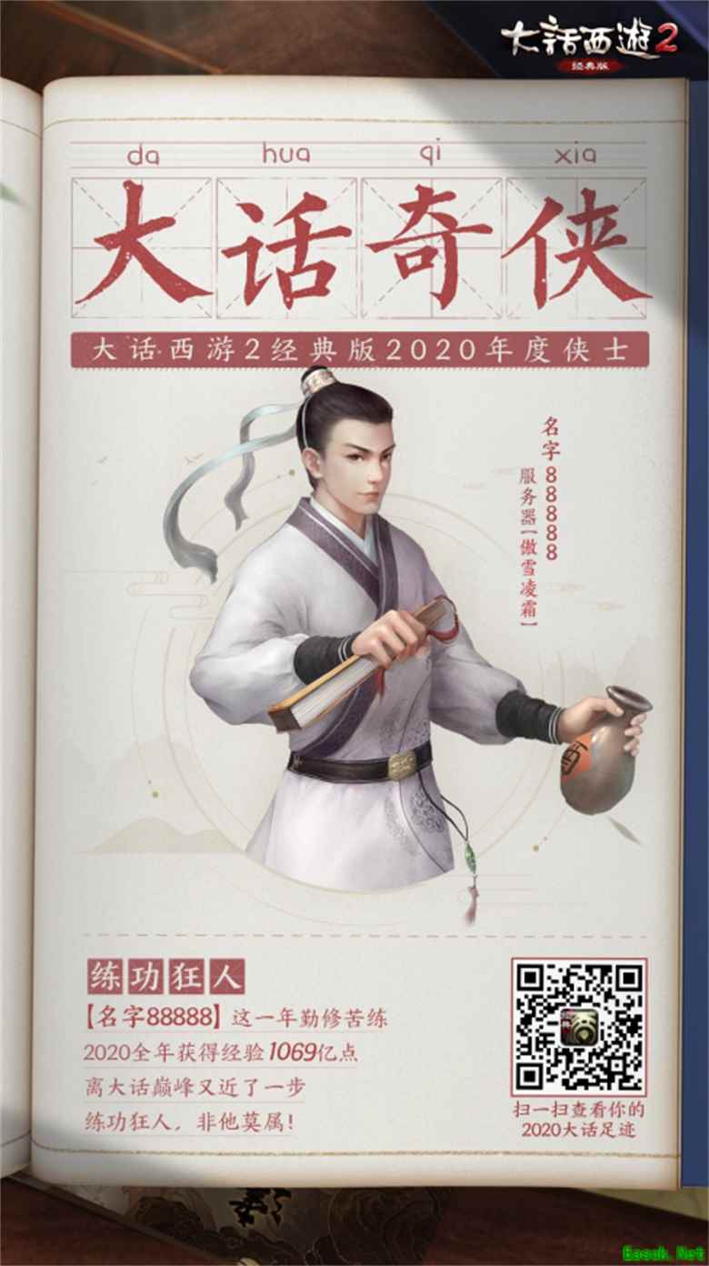 看了这几位侠士的奇特经历,你是否也想起了自己在大话江湖的高光时刻?赶快拿起手机扫描书中二维码,翻开《大唐群侠册》,看看你的大话足迹带来了哪些荣誉,来回味2020年你在大话里经历的每一个精彩瞬间吧!