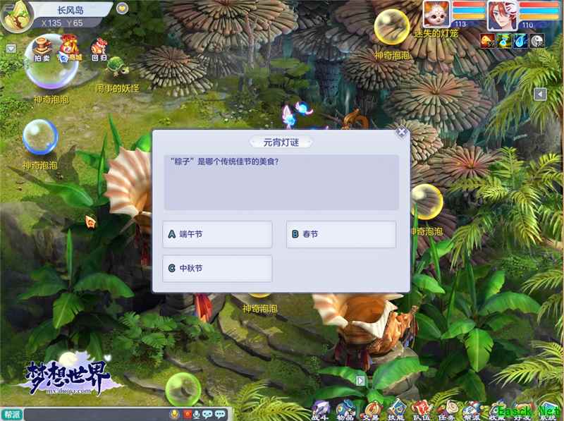【单人比武】 解谜救灯笼 欢乐闹元宵 元宵将至,全新《梦想世界》元宵活今日开启,持续到2月14日结束。活动期间每天10点到22点,迷失的灯笼将于整点出现在太息林地,天水平原,长风岛,落日海湾,幻境海岸,清溪平原场景内,只要少侠答对5道灯谜中的3道,即可帮助迷失的灯笼解开封印!展现智慧的时刻到了,谁才是真正的灯谜终结者呢?