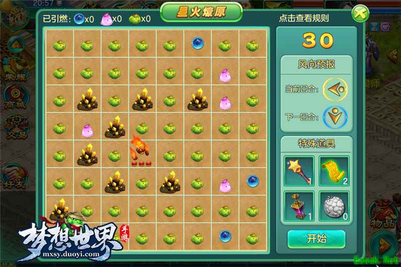 夏日全民大作战,《梦想世界》手游暑期活动正式开启,快来约上好友一起冒险吧!此次活动都有哪些精彩的玩法呢,下面小编就带大家详细的了解一下吧! 星火燎原 益智策略 暑假期间每周一开放,是一个棋盘型策略玩法。每回合开始时,场上的鬼火会根据当前回合的风向引燃位于下风向的毛草团,玩家的目标就是通过计算与规划,有效的使用道具控制火焰走向,尽可能多的获取宝箱和击杀怪物。