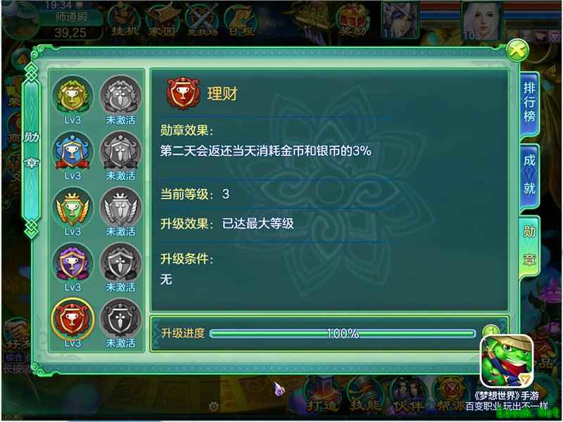 勋章系统策略升级 继四级翅膀、精灵和法宝的火爆推出后,《梦想世界》手游今天又将推出一个全新玩法——勋章系统,量身打造更强的职业角色,游戏策略性更进一层。勋章分为通用勋章和职业勋章两种,职业勋章只能本职业触发达成,且各职业的触发条件各不相同,与职业特色却息息相关,让人惊喜不已。