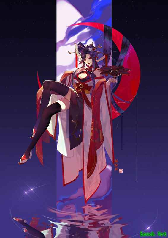 与其他大触不同,“林跃然是好叉子”不仅放出了阿织的同人画,还将从线稿到上色所有的过程以九宫格的形式展现出来。一波涟漪的水面上倒映出阿织的下半身,而坐在红色弯月上的阿织,一股邪魅的气息油然而发,看上去让人又爱又怕。