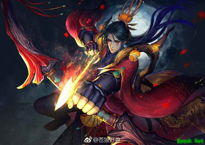 “苍狼野兽”则是另外一种完全不同的风格,在几乎纯黑的背景之下,一身红衣的司羿拉满彤弓,炽热的弓箭就像黑暗中的一道火光,为深陷痛苦中的人们带来希望。