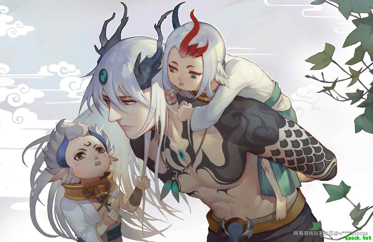 来自“13849****68” 大家的老父亲 应龙殿下 想必看过重聚的踏青之旅剧情的降妖师们一定忘不了剧情中的应龙吧!孤独千年,虽然被尊称为殿下,内心却还是想当爹……这幅同人画就为我们展现了应龙殿下梦寐以求的阖家团聚天伦之乐(x)!而且,不仅仅是风伯变成小正太,连无支祁都变成了小豆丁,别看画中应龙面无表情,心里说不定……乐开了花?