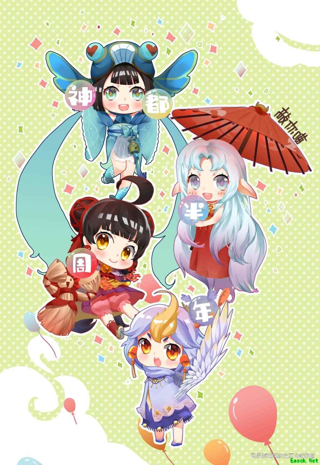 来自“18956****89” 最美祈愿 萌萌萝莉送祝福 此前恰逢游戏半周年庆,有玩家将游戏中超人气四位萌萌小萝莉妖灵——小渔、傒囊、扫晴娘、乌灵,汇聚在这幅画中,祝福《神都夜行录》半周岁生日快乐~哎呀,没想到跟刚刚半岁的神都比起来,这些小萝莉们都能当小姐姐了呢!怪不得她们笑得这么开心! 大家来猜猜看,图上的四位小朋友,谁年纪最大,谁年纪最小呢?