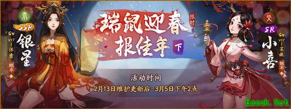 30天新春唤灵礼重磅升级为40天新春唤灵礼,截止2月29日,降妖师们最高可享受到40天共220次免费唤灵次数!3月1日至5日14时,降妖师们还可花费一定玉璧进行补抽领取,万千妖灵,等待与你相逢神都! 网易新概念妖灵大作《神都夜行录》“瑞鼠迎新报佳年·下”活动今日开启,全新SSR妖灵“银星”携手全新SR妖灵“小喜”降临神都,更有新春福利继续放送,即刻登录游戏,喜迎春回大地,万物复苏! |