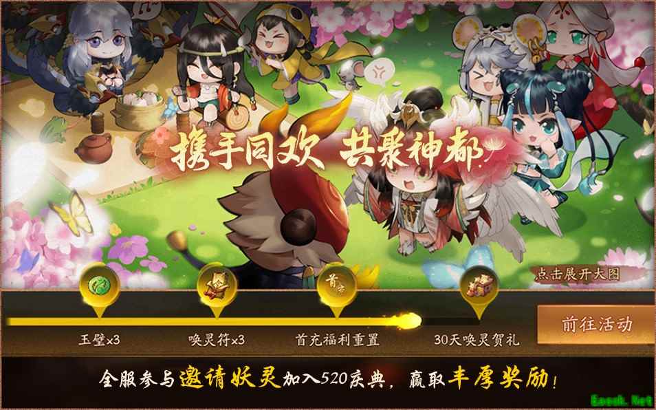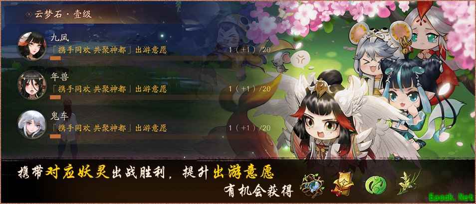 即日起至6月11日14时,降妖师携带指定妖灵出战(包括预备妖灵)任意日常副本及活动副本,成功通关后即可增加其出游意愿,意愿达到最高后,该妖灵将携菜品、玉璧、唤灵符等奖励出席“携手同欢 共聚神都”活动!成功邀请所有妖灵出游的降妖师达到一定数量时,还可解锁全服奖励,更有机会开启首充福利重置并再度解锁30日唤灵贺礼。