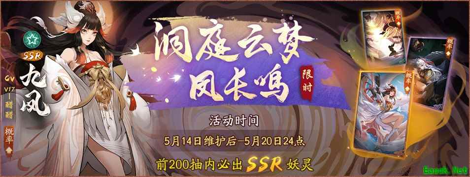 今日更新后,全新主线剧情“有凤来仪”将正式登场,九凤与鬼车的碰撞,注定精彩绝伦。“洞庭云梦凤长鸣”九凤限时召唤开启,截止5月20日前,降妖师们成功唤灵九凤的概率将大幅提升,并可享前200抽必得SSR妖灵的福利!降妖师们也可消耗太素原晶和太素晶核在坊市中直接兑换九凤,感受楚地神女的霸气与柔情!