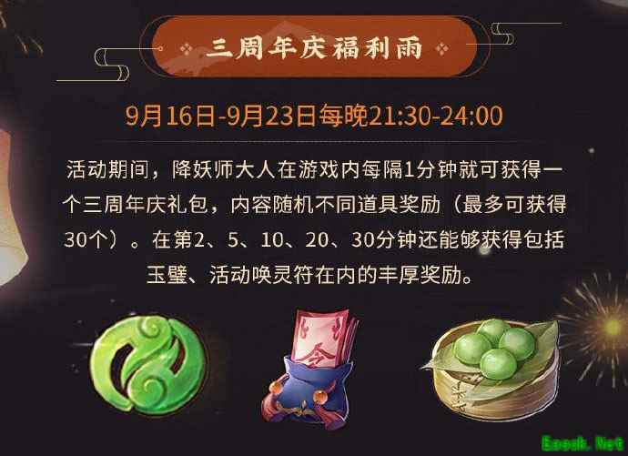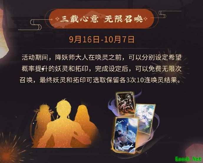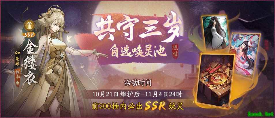 降妖师大人只需参加“共守三岁”活动,即可在限时自选召唤卡池提升1名限定SSR妖灵的召唤概率,享受高概率召唤SSR妖灵的惊喜。