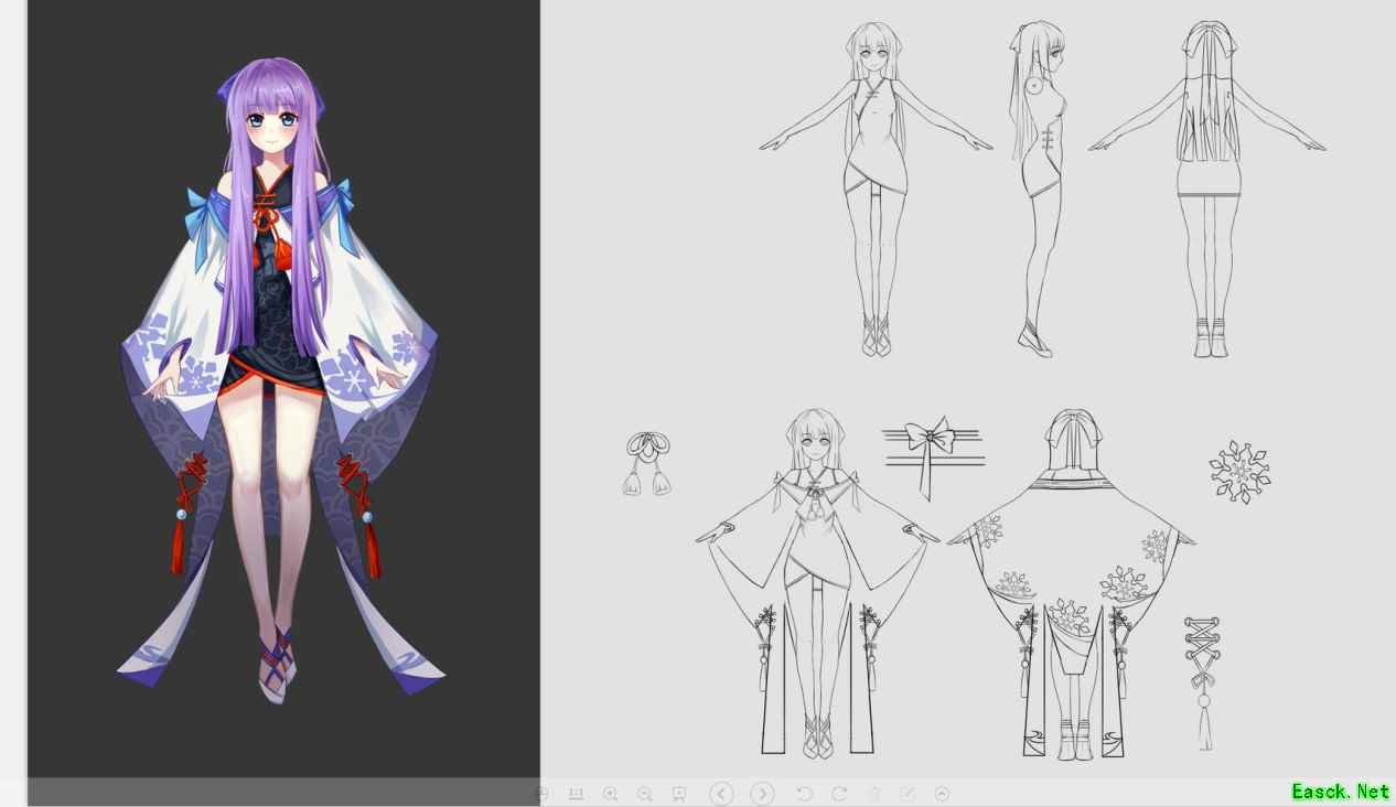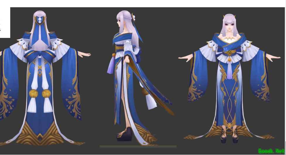 第二版这一版其实满意度非常的高,甚至超出了预期效果,但是整体的着装风格过于偏向和风,袖子显得角色臃肿,挂件配饰也过于繁琐,气质有了一定的提升,但是不符合叶紫芸高贵的城主之女的特点,整体没有良好的延续性,最终依旧是未能通过审核。