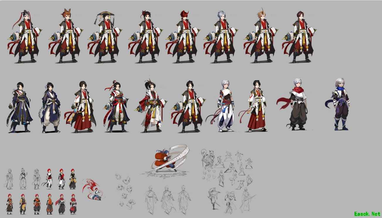 《妖神记》手游近期结束了嘉月测试,其唯美的画风吸引了不少国风用户和二次元用户的关注,今天小编有幸采访到了妖神记手游的美术团队,来揭开妖神记唯美角色设计的幕后故事。 【聂离篇】 聂离是本作的主角,也是我们第一个创作的角色。前世的聂离可以说是命途坎坷,但凭借时空妖灵之书重生之后的他,简直像拥有了人生赢家攻略(划掉),这让天赋一般的他拥有了更多的自信,性格也变得活泼起来,顺便还提前攻略了女神(笑)。聂离对前世背叛人类的家族有了更多的堤防,前世的经验教训让他变得越发机敏,有着不符合年龄的思维模式。 设计聂离的时候,我们就希望能突出他的性格和经历:一个是他经历了前世种种,怎么去表现这样的经历,一个是他现世显得有点跳脱但实际非常沉稳的性格,在视觉上如何体现出来。 最初我们想先跳开之前的人设,能多一些可能性,做了一组方案,虽然有些方案在视觉上看起来搭配不错,但都很难达到我们的需求,缺乏记忆点,同时有几个设计过于武侠,不太适合做角色的基础人设。