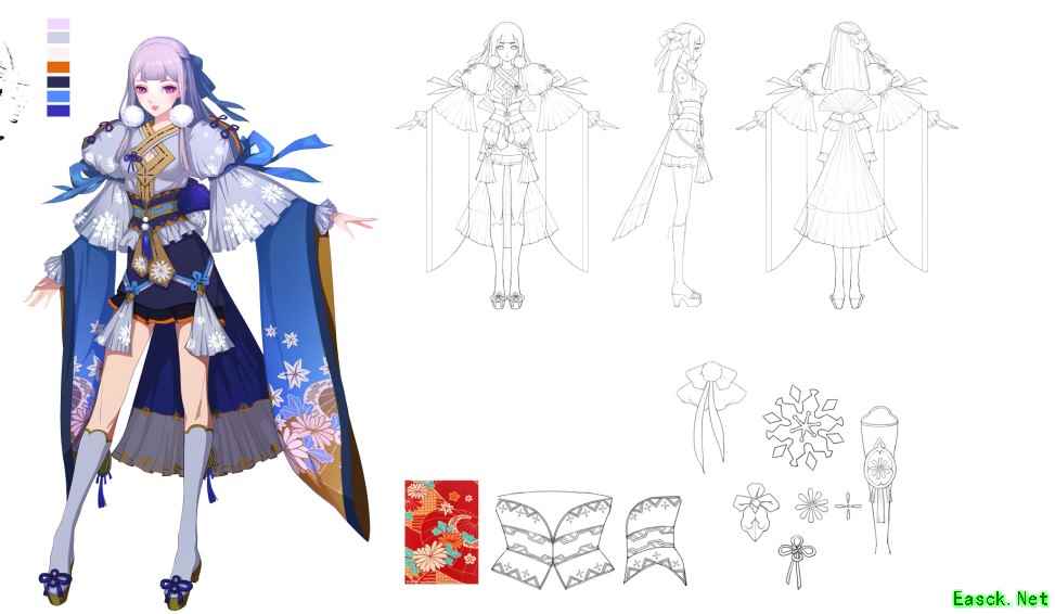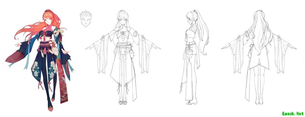 第二版可以说还是有了一定的提高的,但是服饰有些繁琐,细节太多使得视觉注意力分散,反而缺乏了记忆点,而且偏向和风,不是很符合我们国风的定位。最终也忍痛割舍了。