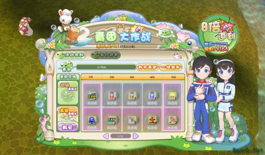 每圈走到积分格子或者起点可以获得积分奖励,积分可以在纪念品商店内兑换奖励,达到指定圈数还可以获得额外的圈数奖励。 【青团大作战 换魔龙套装】 又到了吃青团的季节,收集青团解锁奖励,收获一天好心情。完成每日任务即可获得青团,领取对应的青团礼奖励。如果充值开启《希望OL》高级青团礼奖励,还能额外获得一份珍稀道具。