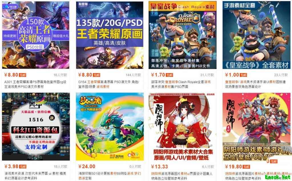 啥是手游拆包? 简单的说,就是一些技术型大佬对热门游戏的客户端进行破解,将里面的素材扒出来,然后在打包上传到网盘之上供同好之人下载欣赏。这些素材既包含玩家可能没见过的未解锁内容,也会包含一些游戏还没有开放的提前更新内容。由于这些资源基本通过简单拆解游戏包体就得到了,所以玩家都称这种做法为“拆包”。正所谓有需求就有供给,目前除了在论坛、贴吧等处会有网友求资源以外,我们发现有的人已经将“拆包”当成是一种生意,做到了明面之上。只需要在某宝上面输入手机游戏原画/UI等字样,我们就可以搜到大量的相关内容,《王者荣耀》《阴阳师》《梦幻西游》当然不在话下,甚至一些源自海外的热门游戏如《皇室战争》《Pokemon GO》《炉石传说》都遭遇过类似的待遇。并且不得不说,它们在销量方面还真的“表现不错”。
