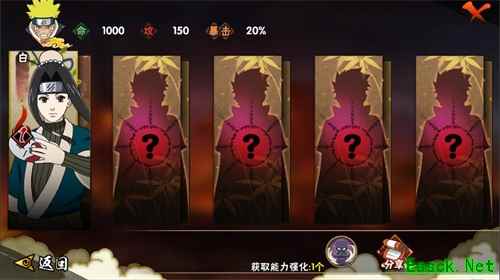 “幻之试炼” 充满随机元素的单人副本 挑战暗藏玄机 “幻之试炼”内充满了各种随机的元素,让体验者每次挑战都能感受到不同的乐趣。“幻之试炼”可以无限次不耗费任何道具进行挑战,忍者学员可以通过宝箱随机获得各种能力增幅,也将会随机遇到不同BOSS。当你激活宇智波佐助「万花筒写轮眼」时,还能打出隐藏关卡,挑战实力超强的宇智波鼬「须佐能乎」哦! 此外在副本里还有一些隐藏的要素出现,如在一些关卡内会有隐藏宝箱需要忍者学员发掘。而在挑战每关时,控制自身血量还可以开启光门,进入神秘房间。 “幻之试炼”考验学员们的综合实力,通灵兽的使用、属性的选择、在地图中走位都将影响你能否顺利通关。