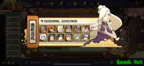 犬冢牙「忍界大战」 除了全新忍者犬冢牙「忍界大战」外,游戏内“春日祈愿”、“忍者赏金赛”、“忍者学校”、“周周好礼”等福利活动火热进行中。学员们累积祈愿21天即可免费领取一位强忍,限定忍者12选1,其中包括鬼灯水月「鹰」、黑土等战场强忍哦,千万不要错过。