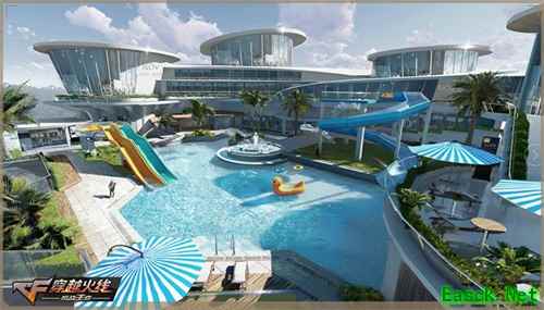 生化3.0 “决战赤壁”地图为地形复杂的中大型地图,繁杂的阁楼内设大量的障碍物,可谓是擅长跑酷、集火蹲点玩家的天堂。其中,地图的“船区”部分作为整个场景中最具代表性的地标建筑,有着整个场景最高的防守点位。“新生化酒店”地图拥有更豪华的景观和建筑,画面具有更逼真的动态景观效果,让人感受到度假的轻松愉悦。不仅如此,地图新增了更多跳跃的设定,包括传统的喷水柱、水池中的圆游泳圈、旋转滑梯最末尾的部分,让人类阵营拥有更多跑酷和周旋的余地,完美平衡双方阵营的战斗优势。