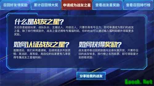 “战友星计划”福利活动-首期奖励 战友之星横空出世!召唤奖励源源不断 CF手游全新推出的“战友星计划”福利活动,是一个玩家召唤好友赢取大奖的福利活动。无论你是超级玩家、战队队长、主播达人、内容达人,只要你具有号召力,即可申请成为游戏的战友之星。除了排行榜奖励外,战友之星还拥有专属福利码,你的粉丝可以通过输入福利码额外领取更多奖励。 目前活动采取邀请制,唯有被邀请的玩家可以认证战友之星。后续,游戏将逐步开放认证资格条件;高活跃、高等级、高段位的玩家,更有几率获得专属战友之星的福利码,认证成为战友之星。该活动奖励划分为“本期召唤奖励”、“本期奖池福利”和“星计划召回终极奖励”三大板块,其中前两个板块奖励定期更新,战友之星可以源源不断获取新奖励。